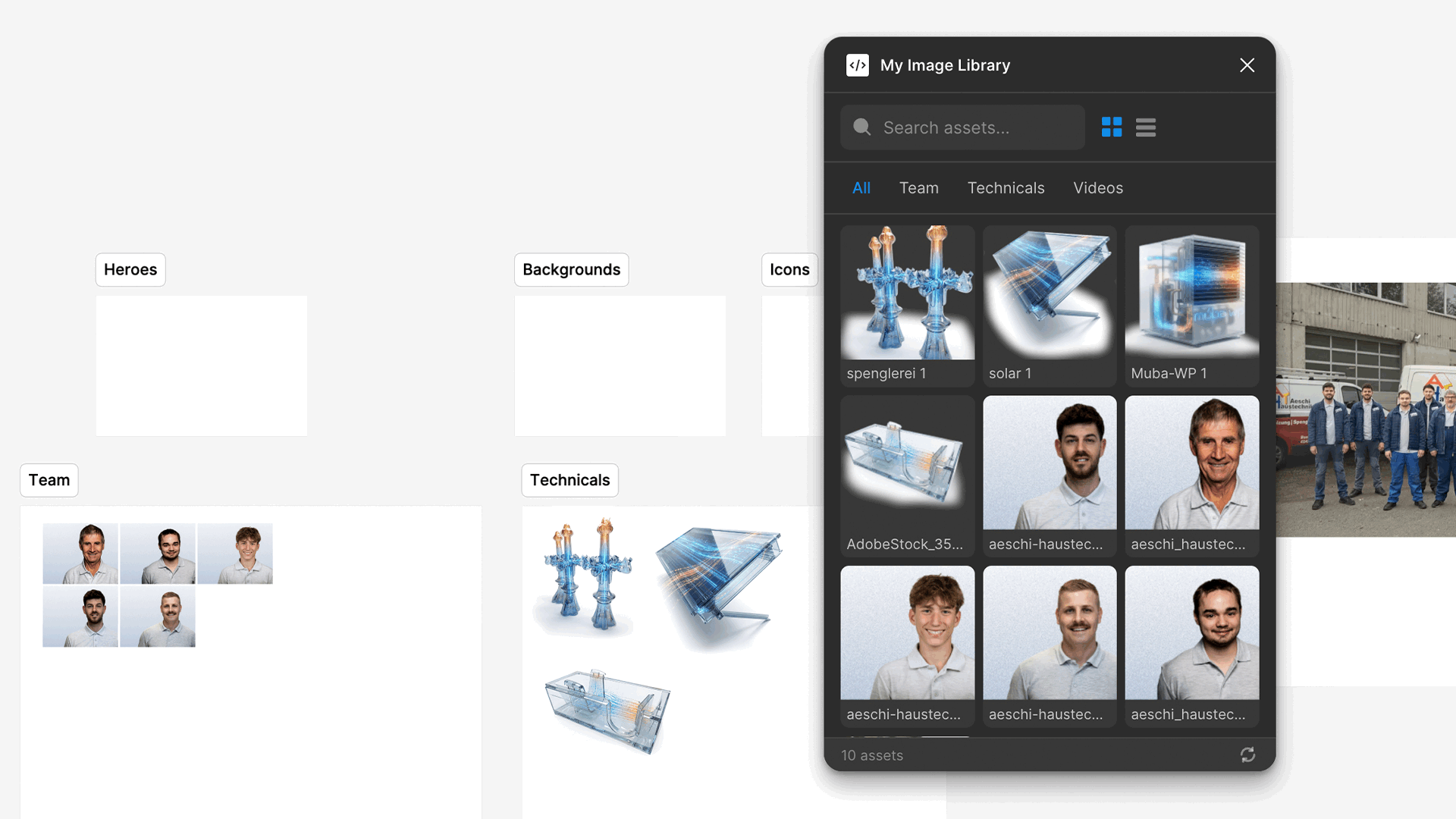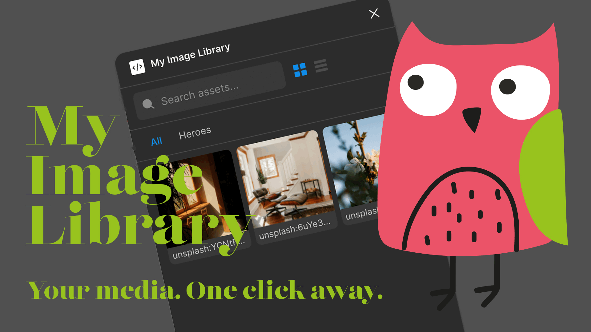 My Image Library turns a dedicated Figma page into your personal, searchable media library. Add your images and videos once — then browse, search, and insert them anywhere with one click.